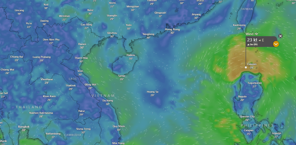 - Ngày 22/8/2025 : Lúc 10h đang ở đảo Luzon (Philippines) sau đó di chuyển ra biển đông hình thành cơn bão số 5 ngoài biển Đông